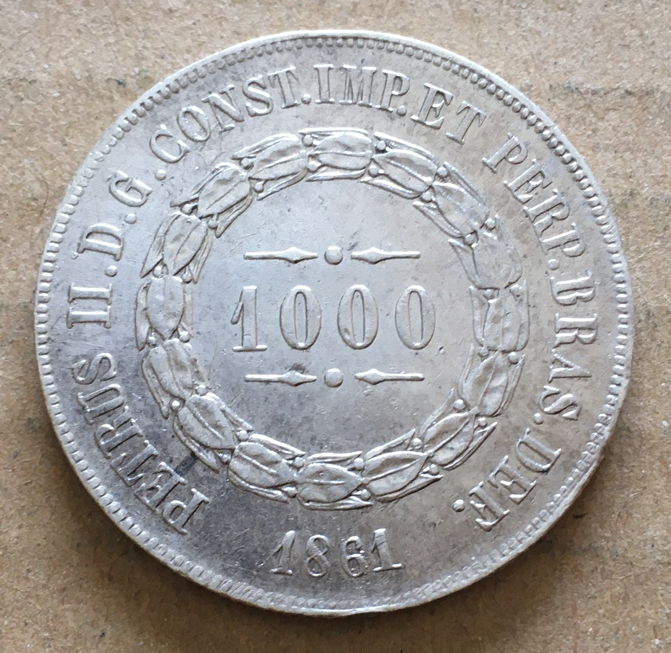 ブラジル 年1861 1000レイス 銀 \4000 |