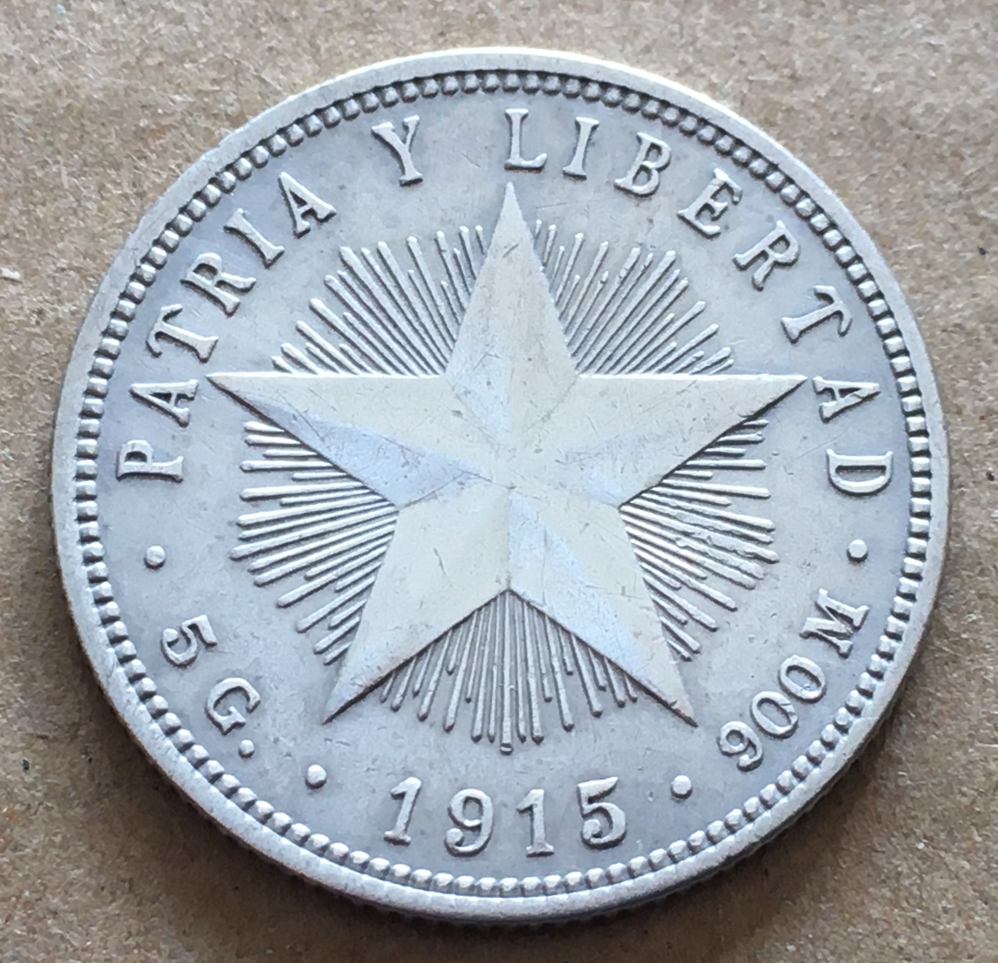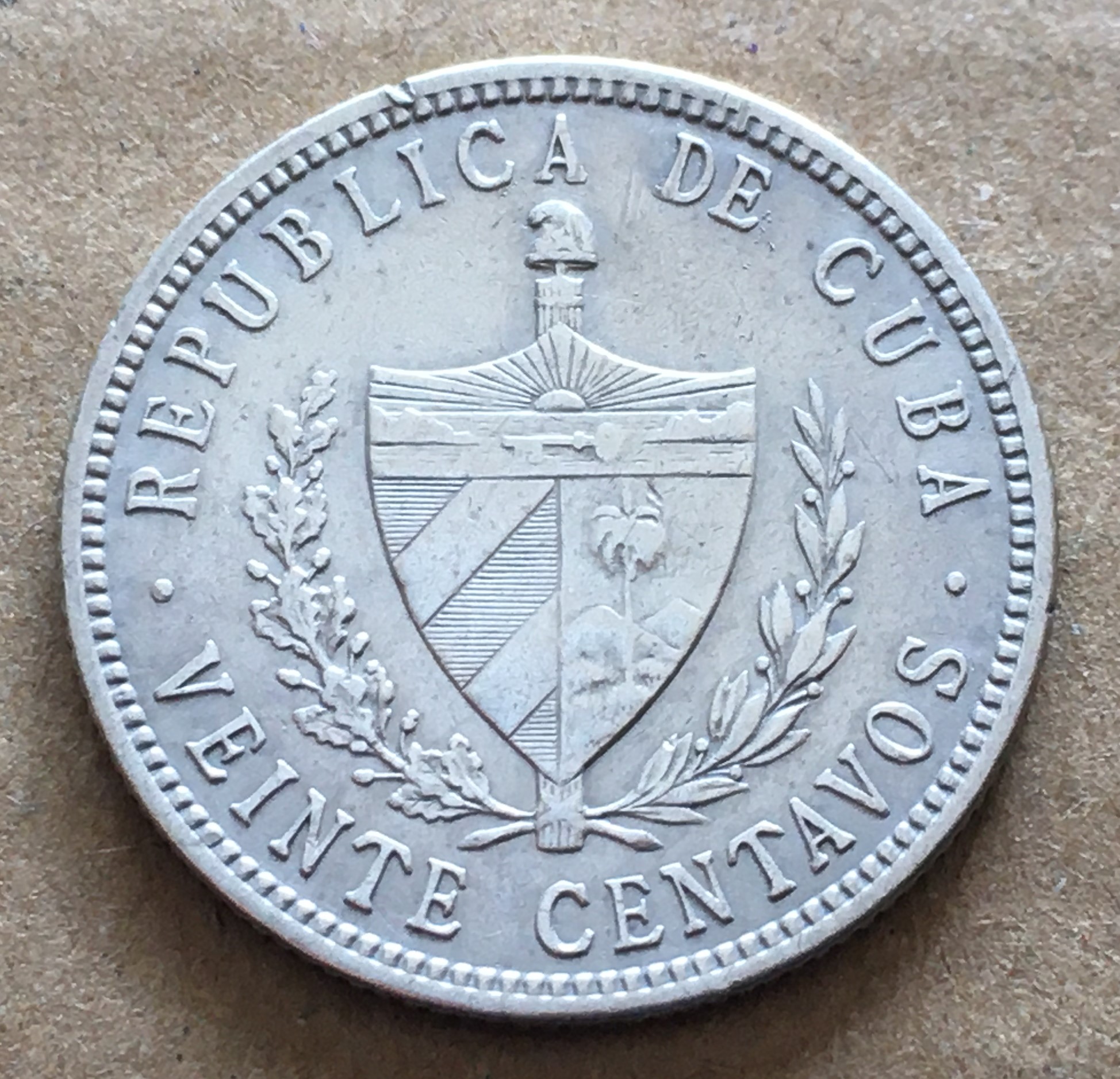 キューバ 年1915 20センタボ 銀\3600 |