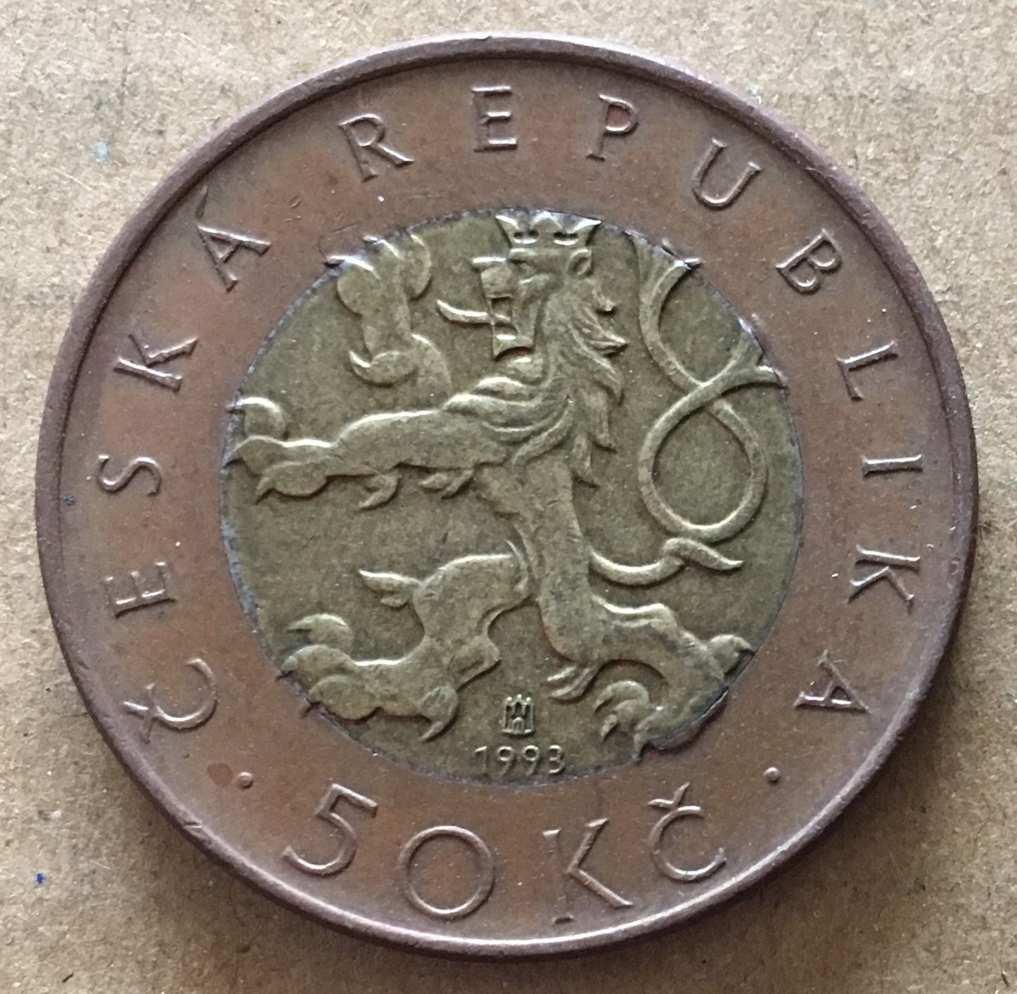 チェコ共和国 年1993 50コルン バイメタル \4000 |