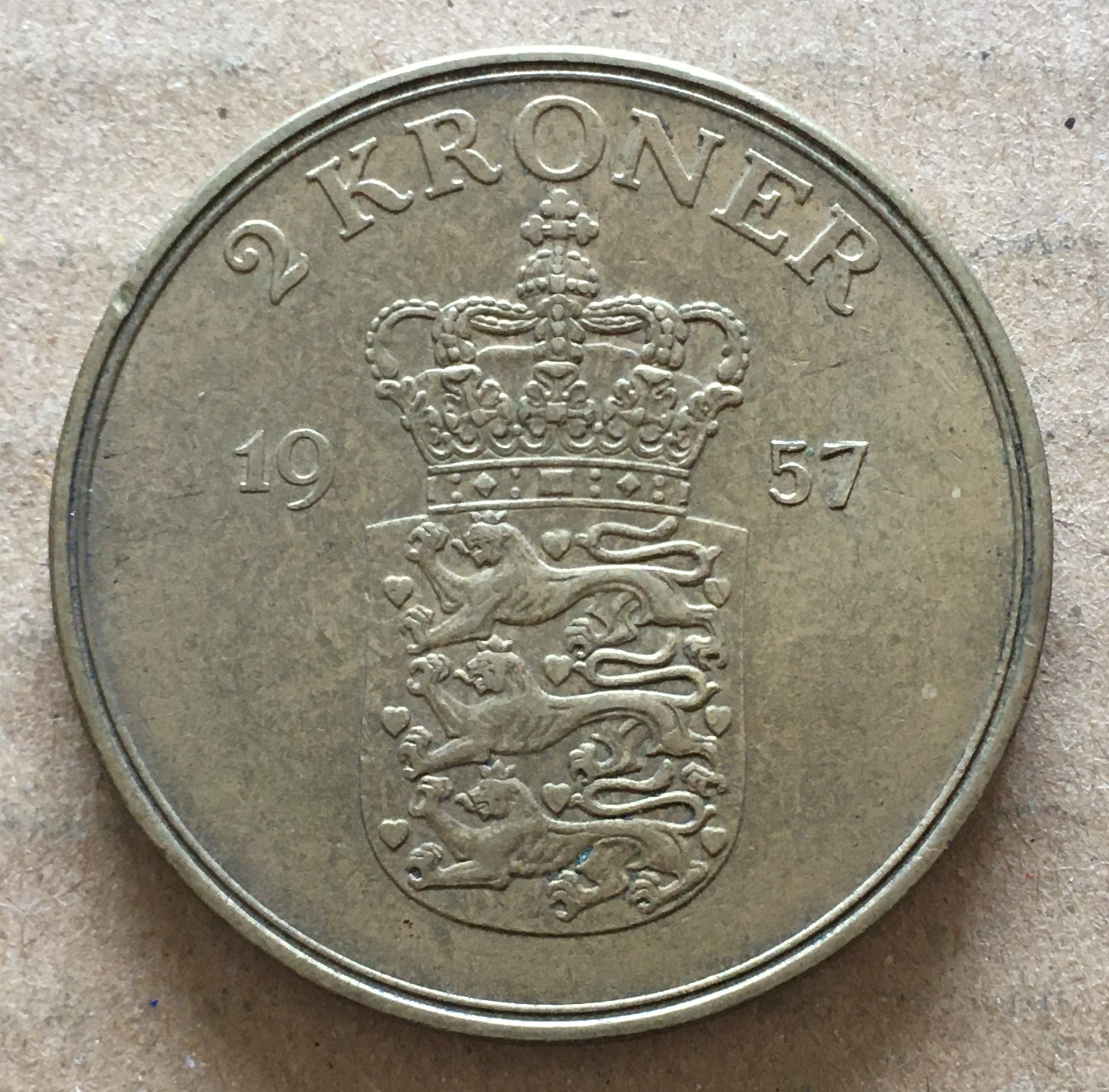 デンマーク 年1957 2クローネ アルミ-ブロンズ \4500 |