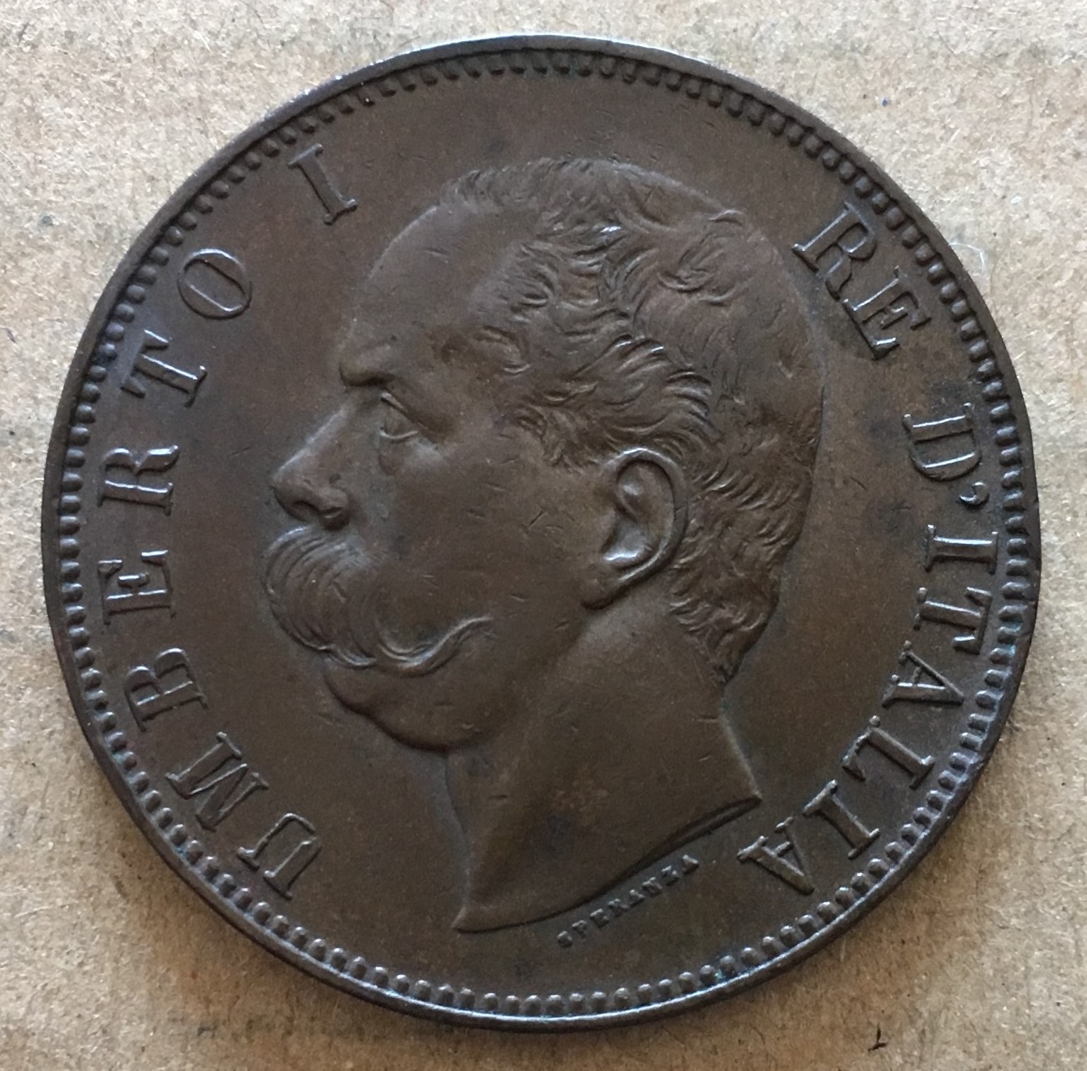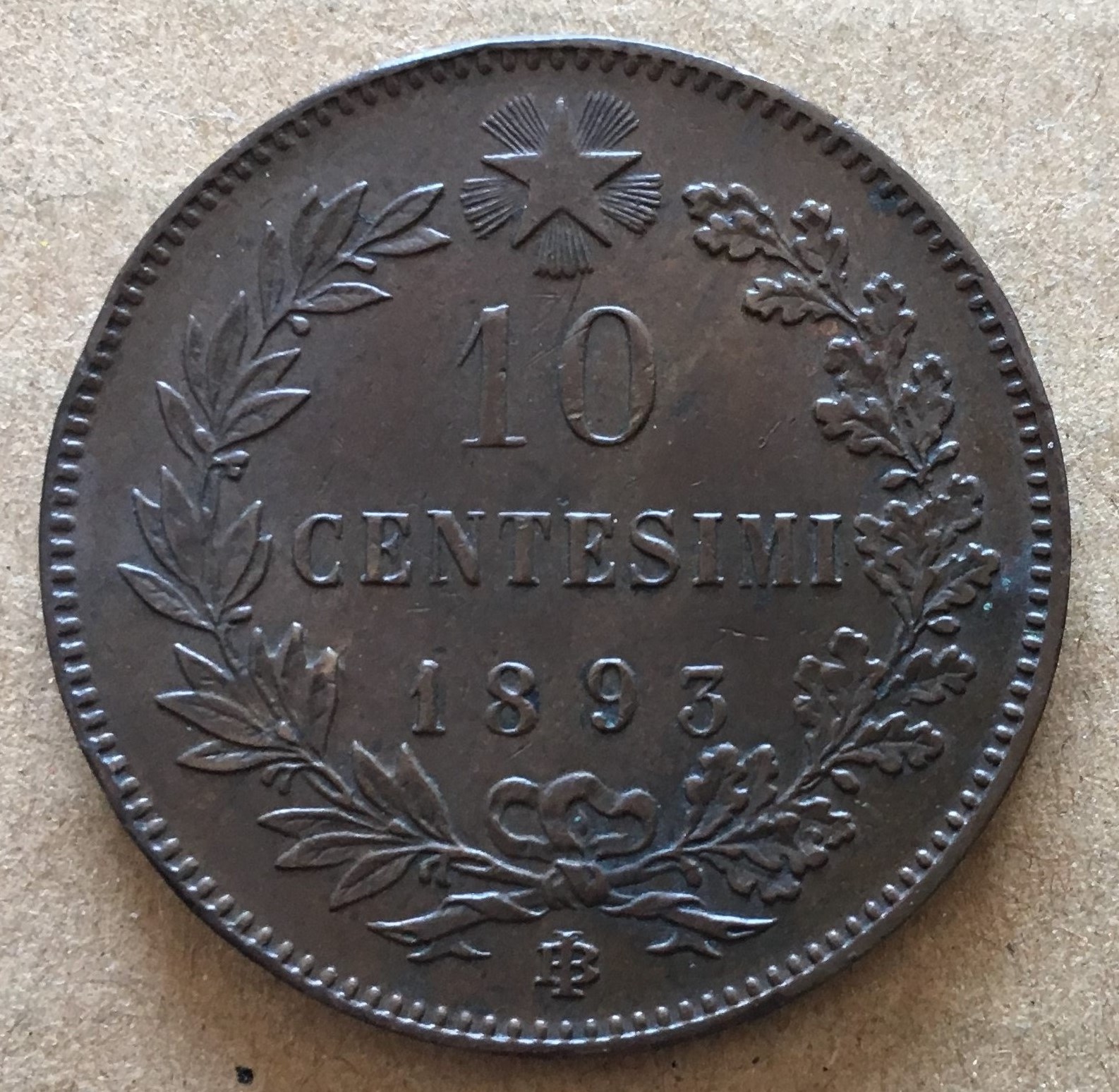 イタリア 1893BI 10センテシミ 銅\7500 |