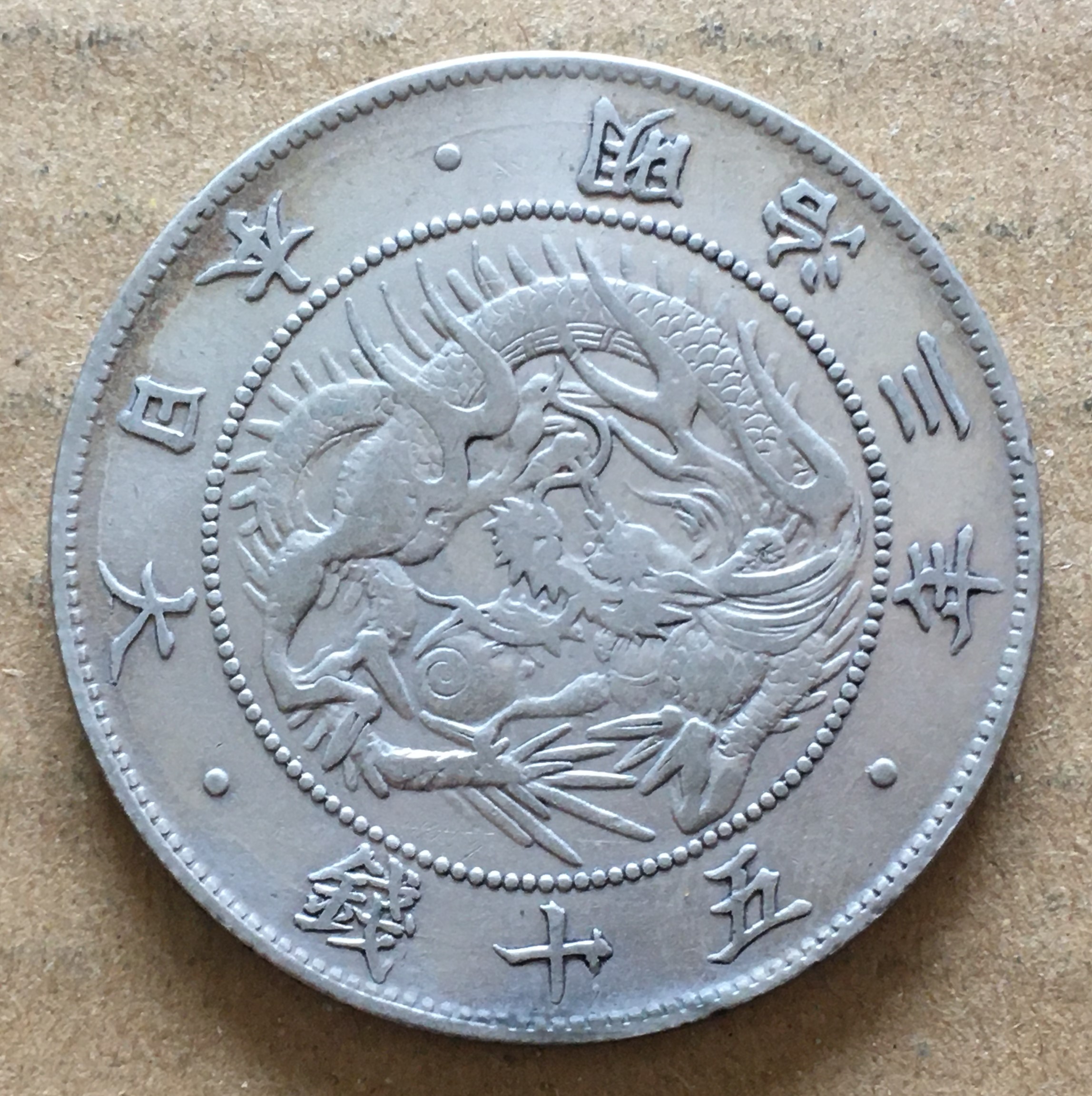 日本 1870 明治3年 50銭 銀 \13,000 |