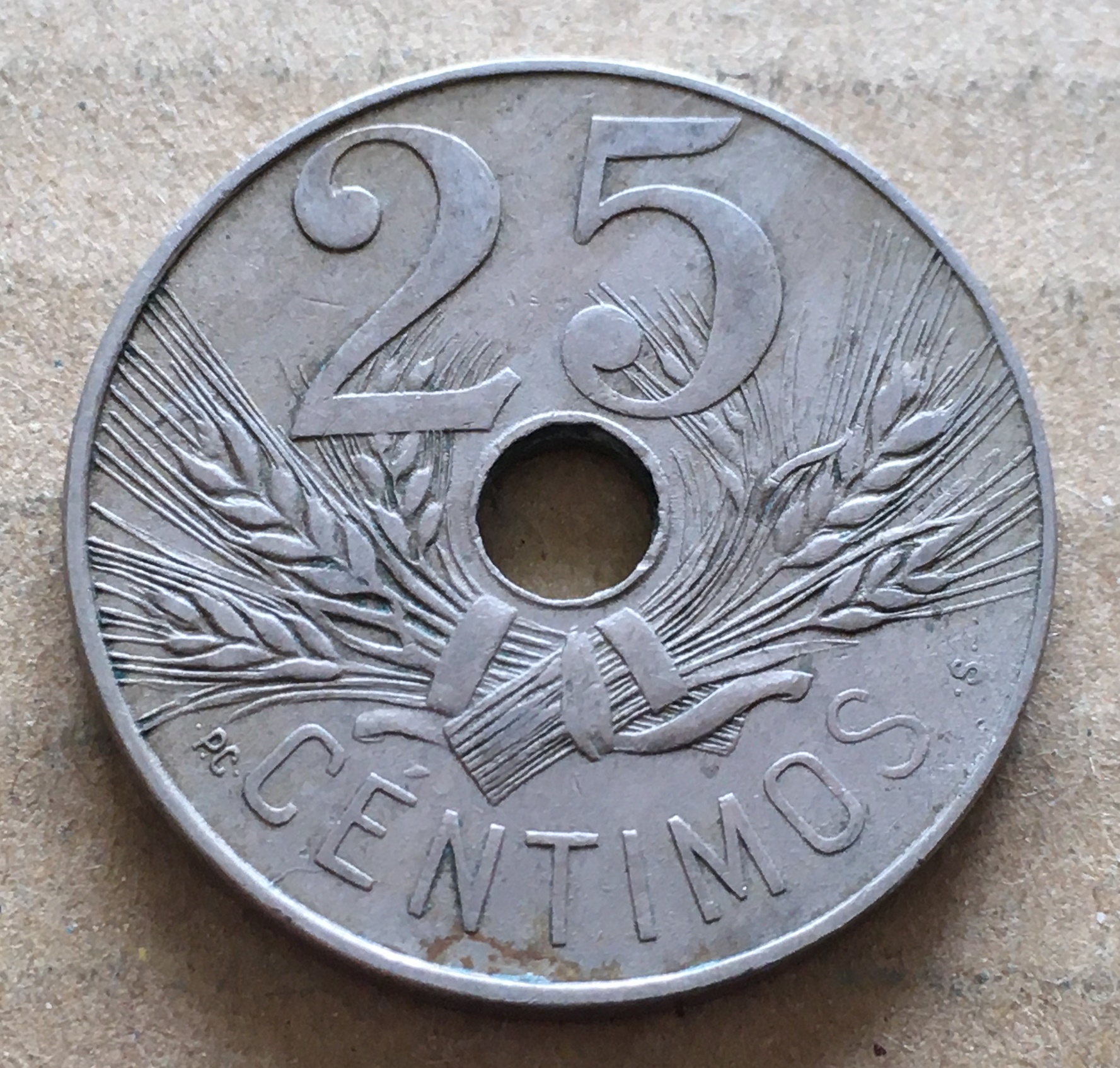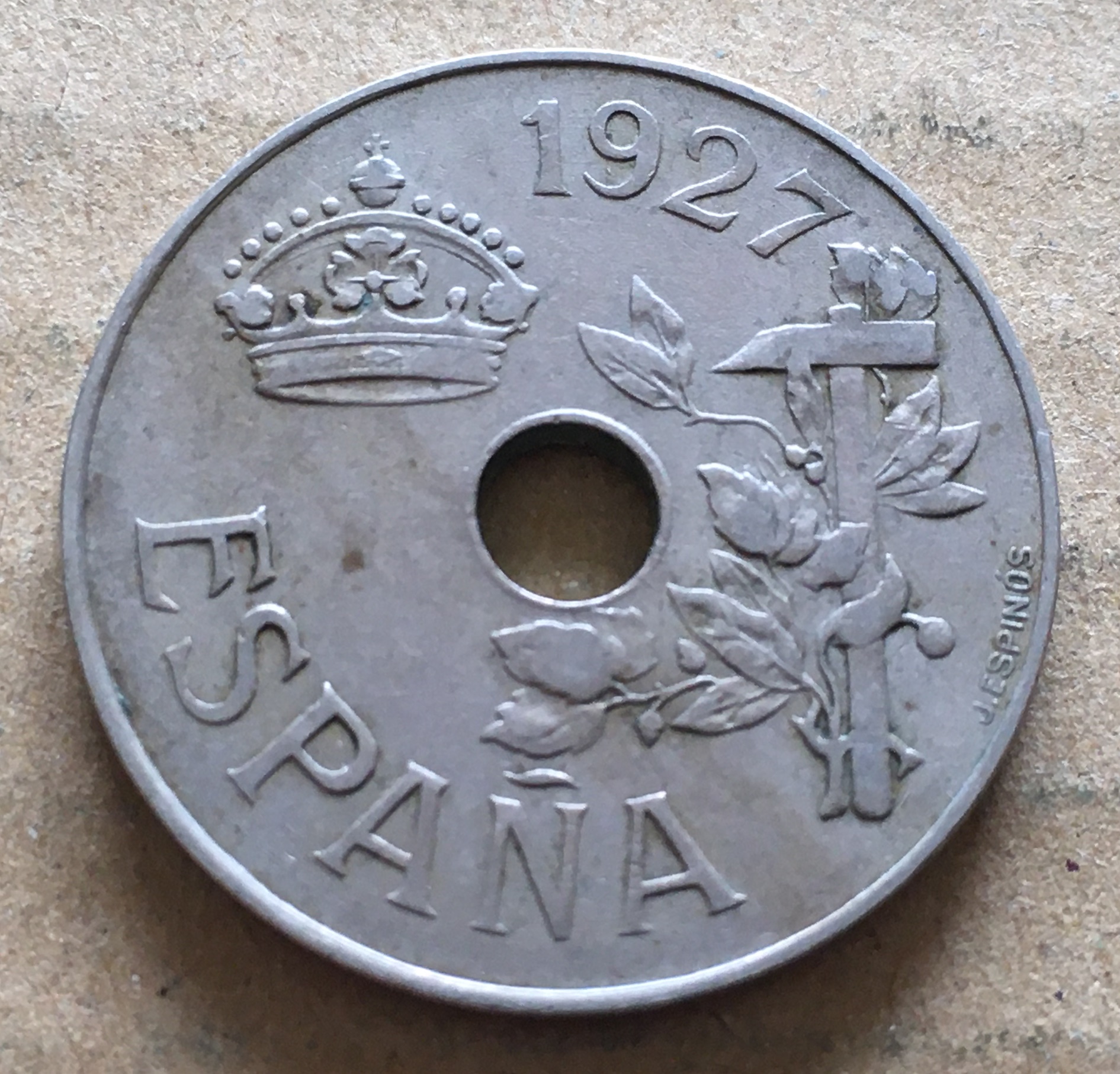 スペイン 1927 25センティモス 白銅\6000 |