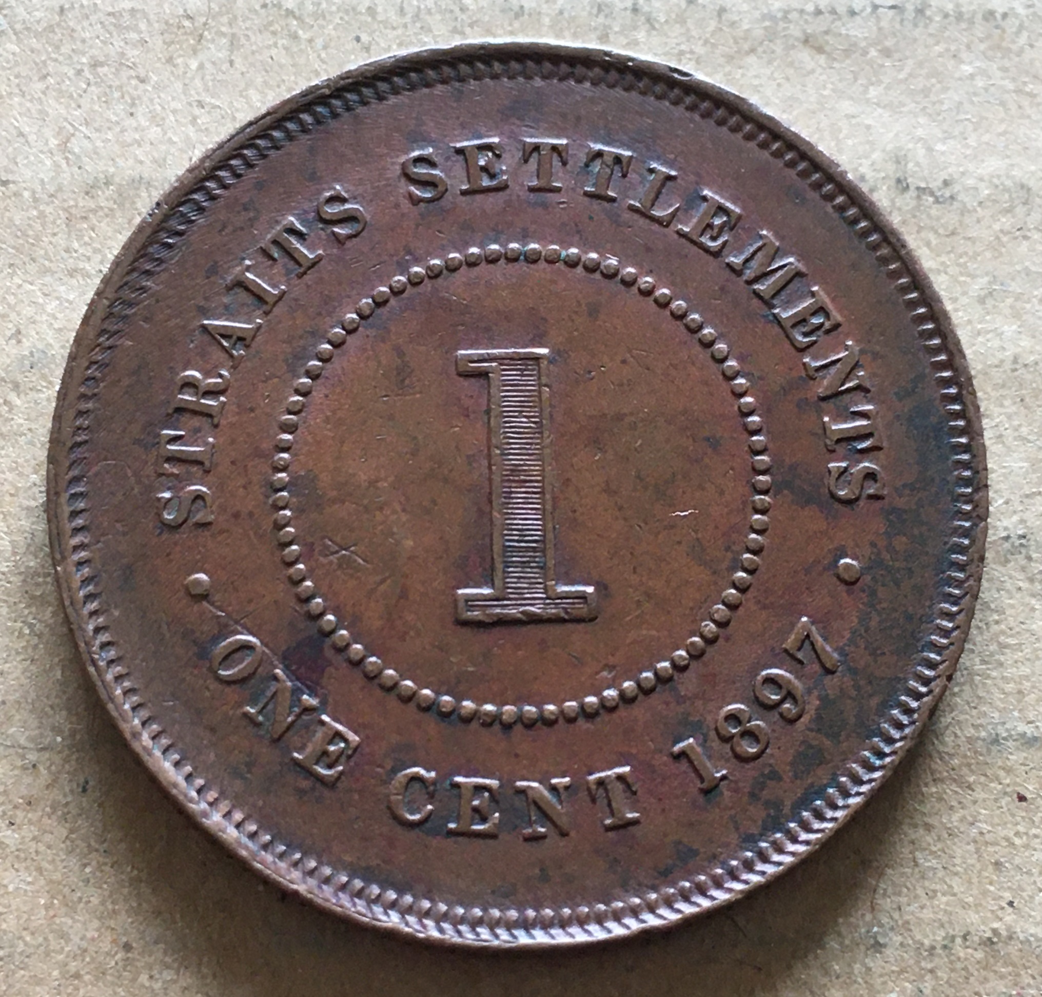 海峡集落 1897 1セント銅 \6000 |
