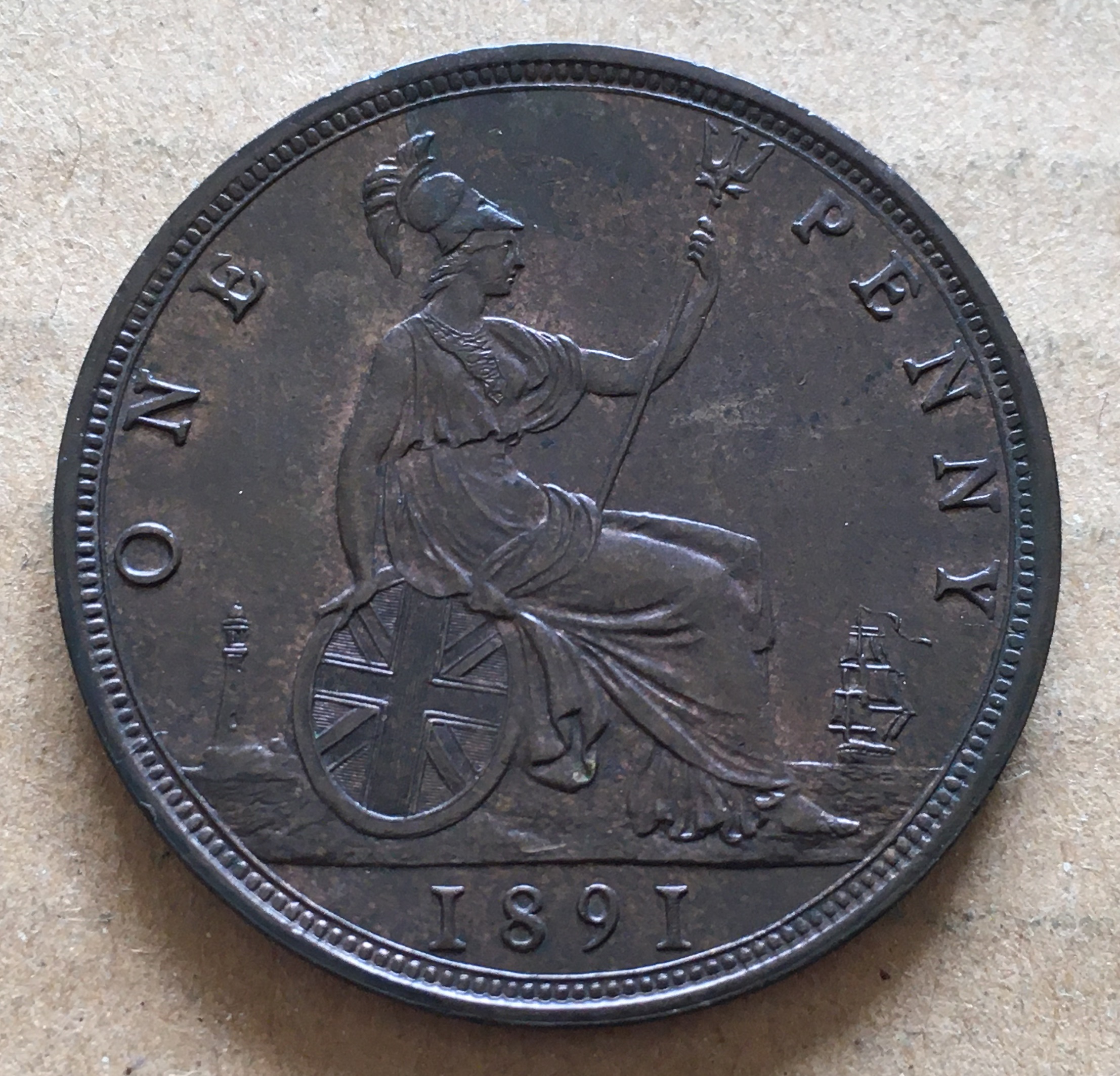 イギリス 1891 1ペニー青銅 \20,000 |